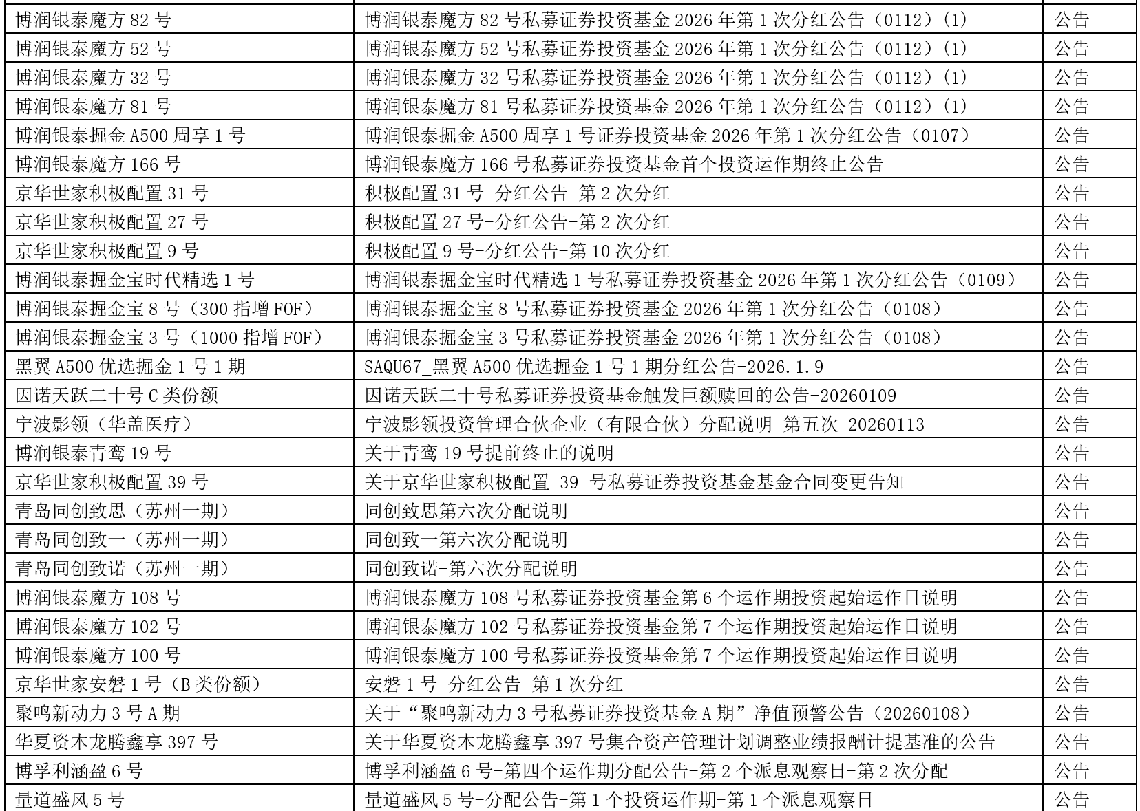 关于我们 >> 网站公告 >> 信息披露提醒2026.1.16 信息披露提醒2026.1.16 2026-01-16 尊敬的投资人: 以下产品信息已发布,请您登录会员中心或嘉实财富APP查看,或咨询您的理财师。