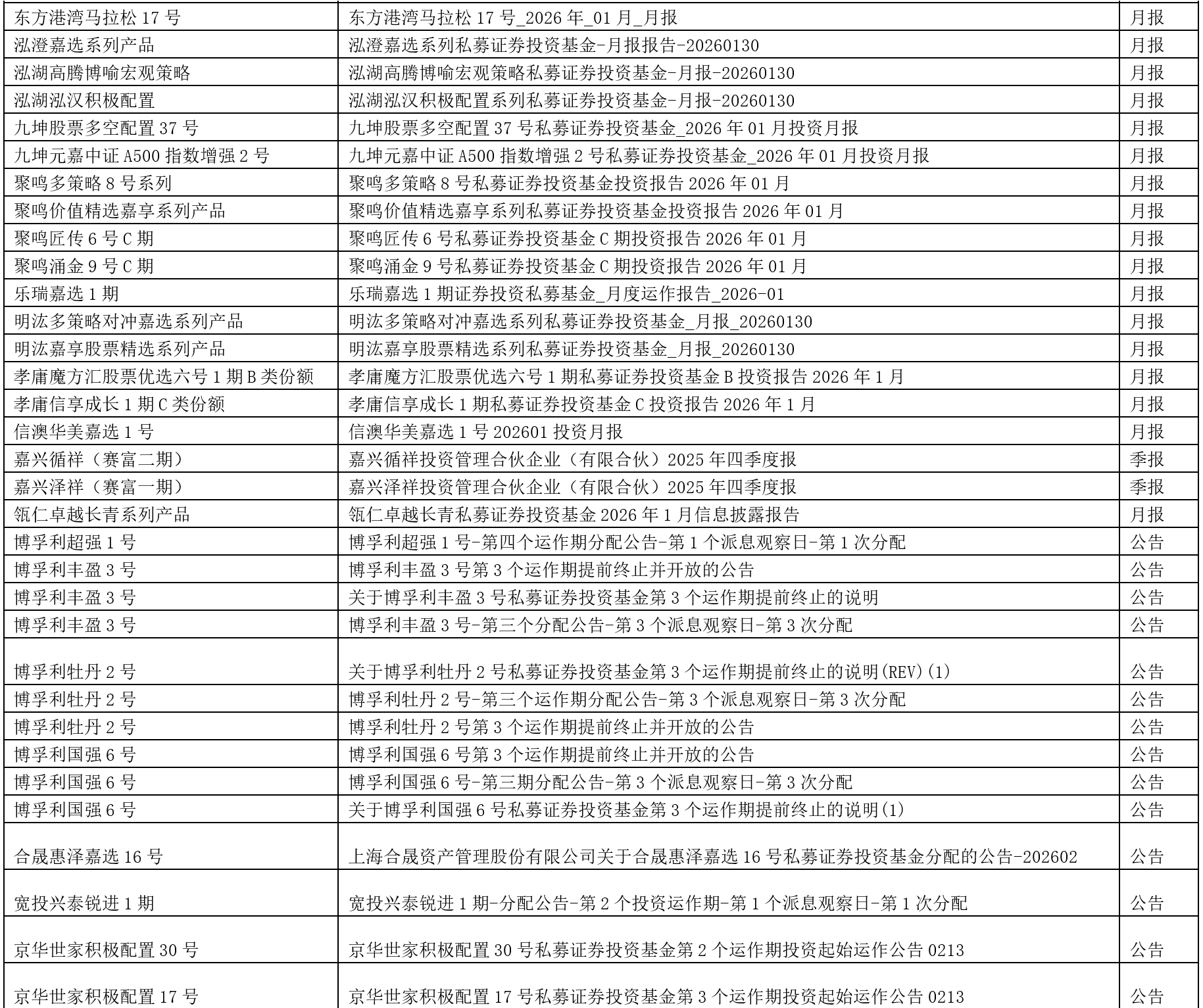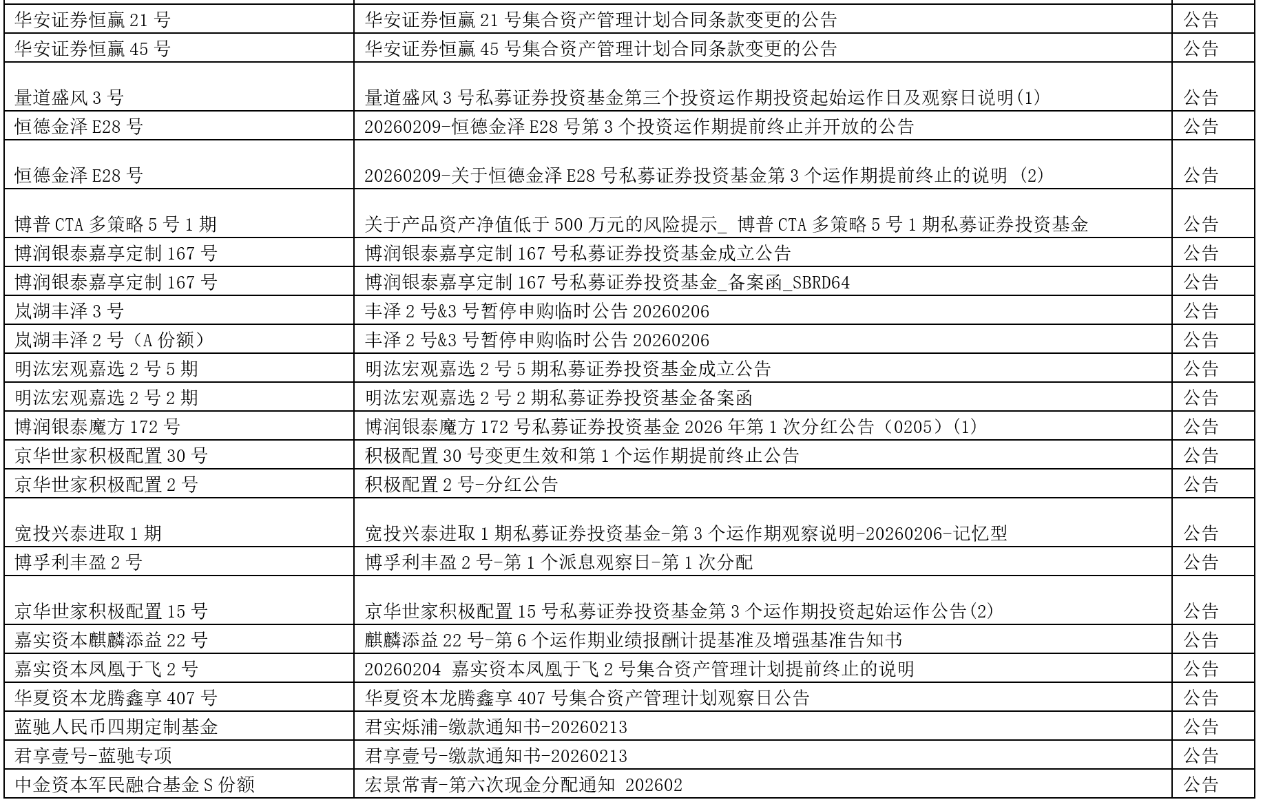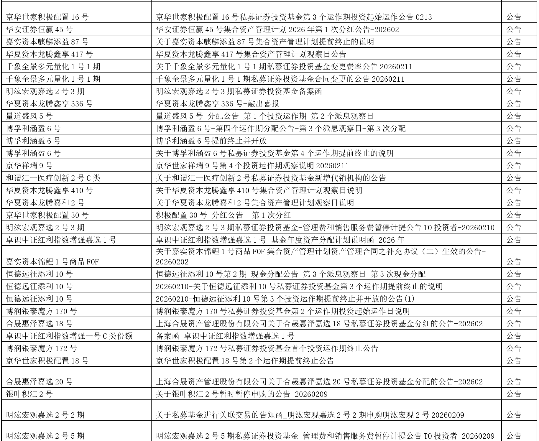 关于我们 >> 网站公告 >> 信息披露提醒2026.2.13 信息披露提醒2026.2.13 2026-02-13 尊敬的投资人: 以下产品信息已发布,请您登录会员中心或嘉实财富APP查看,或咨询您的理财师。
