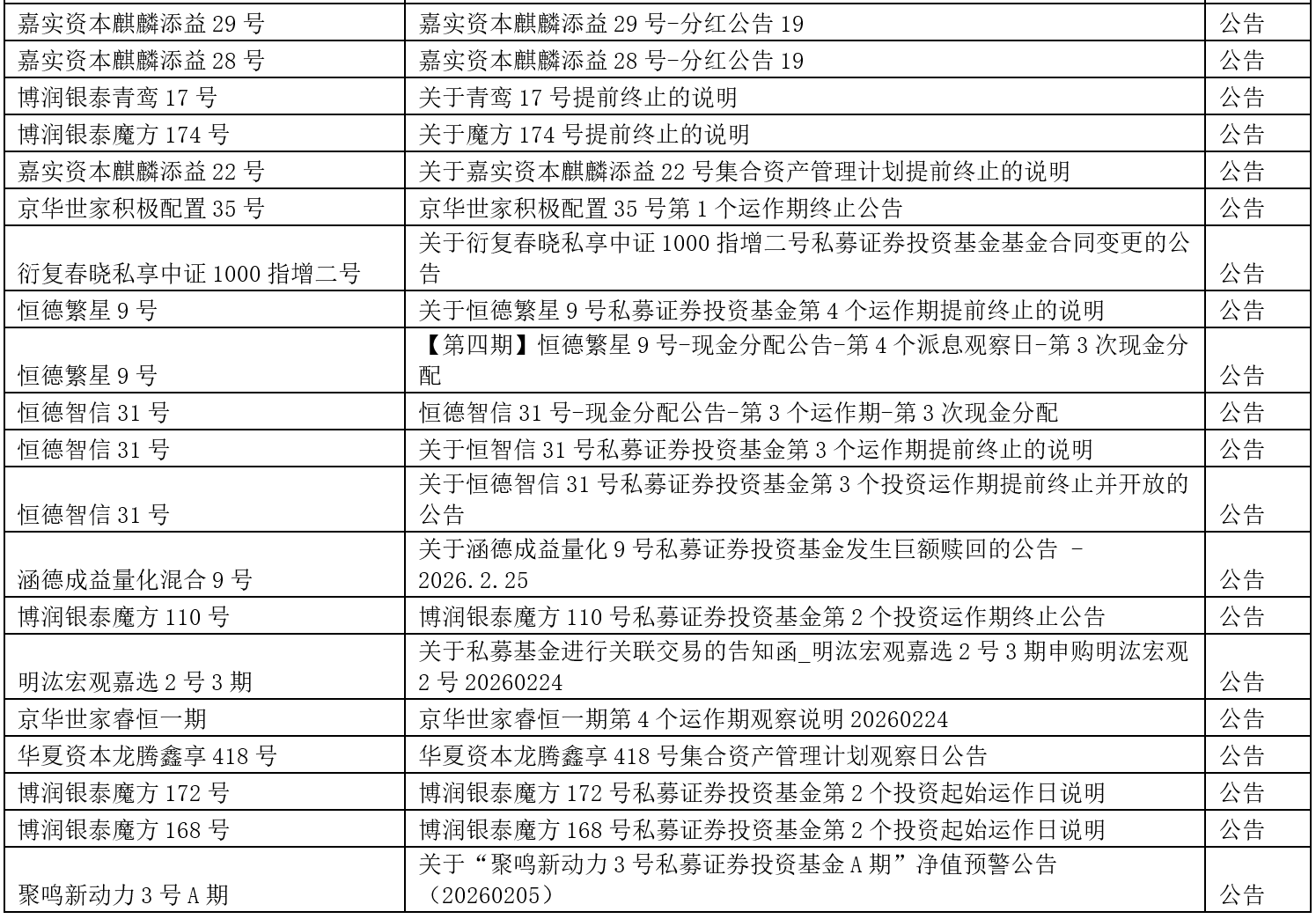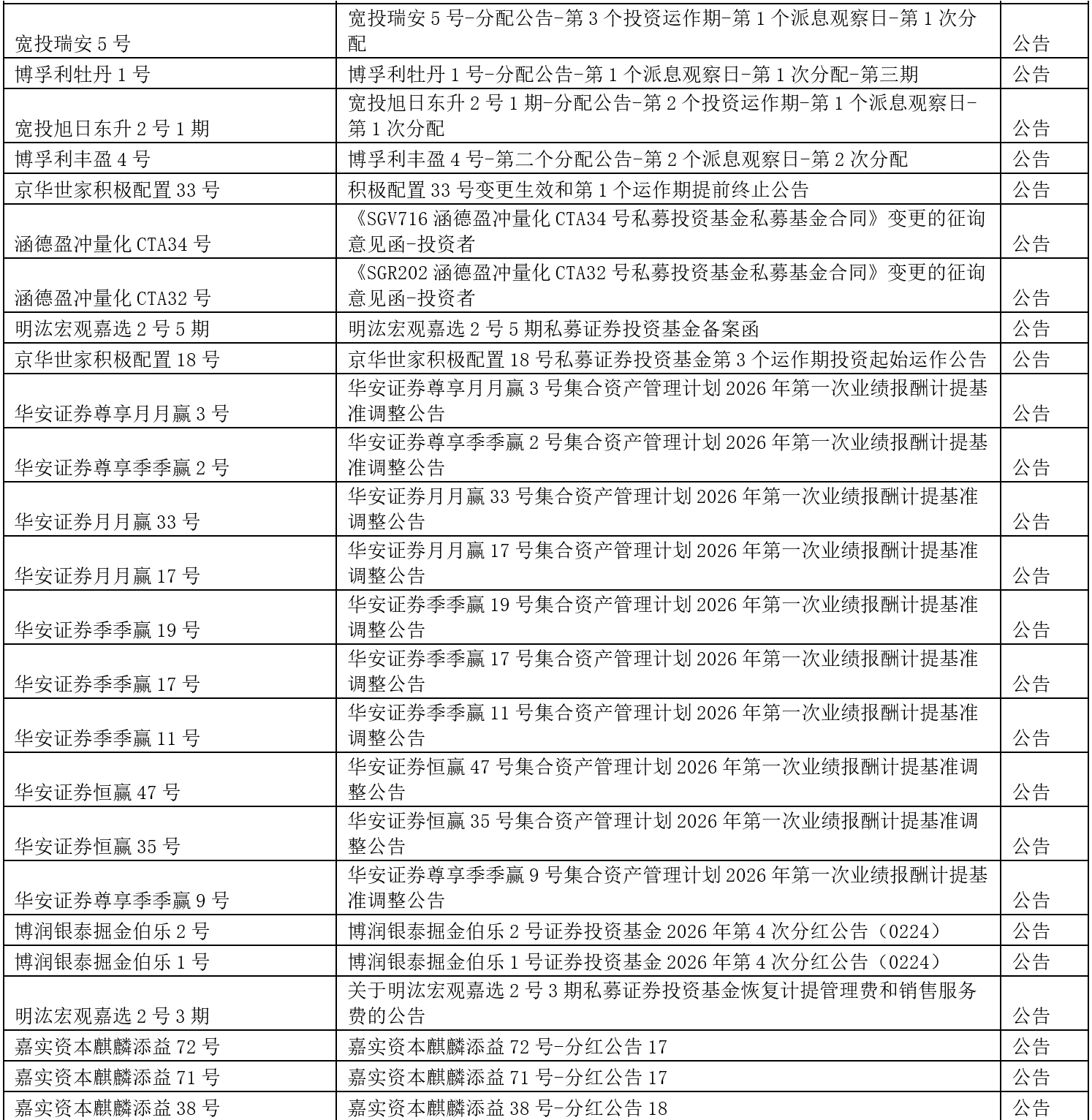 关于我们 >> 网站公告 >> 信息披露提醒2026.2.27 信息披露提醒2026.2.27 2026-02-27 尊敬的投资人: 以下产品信息已发布,请您登录会员中心或嘉实财富APP查看,或咨询您的理财师。