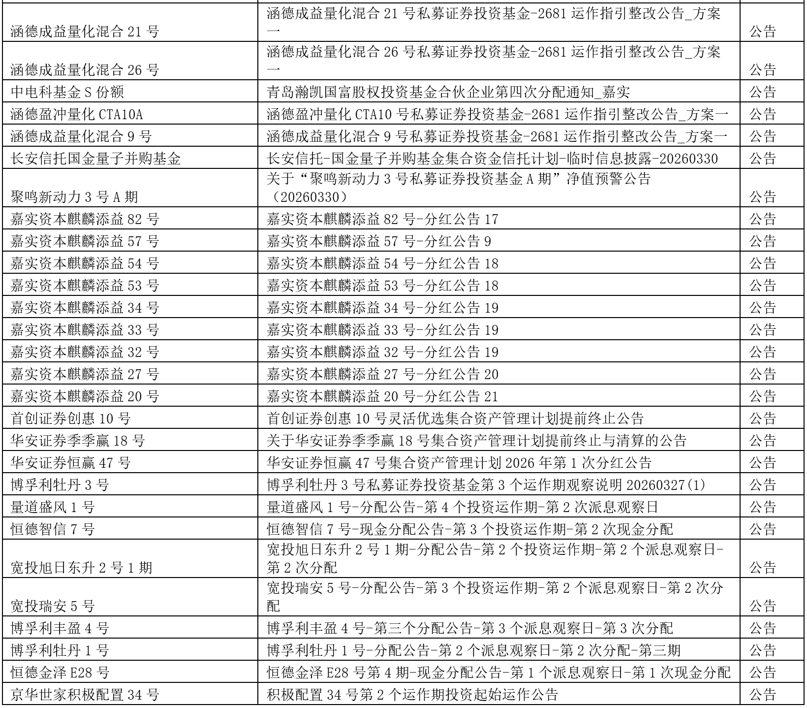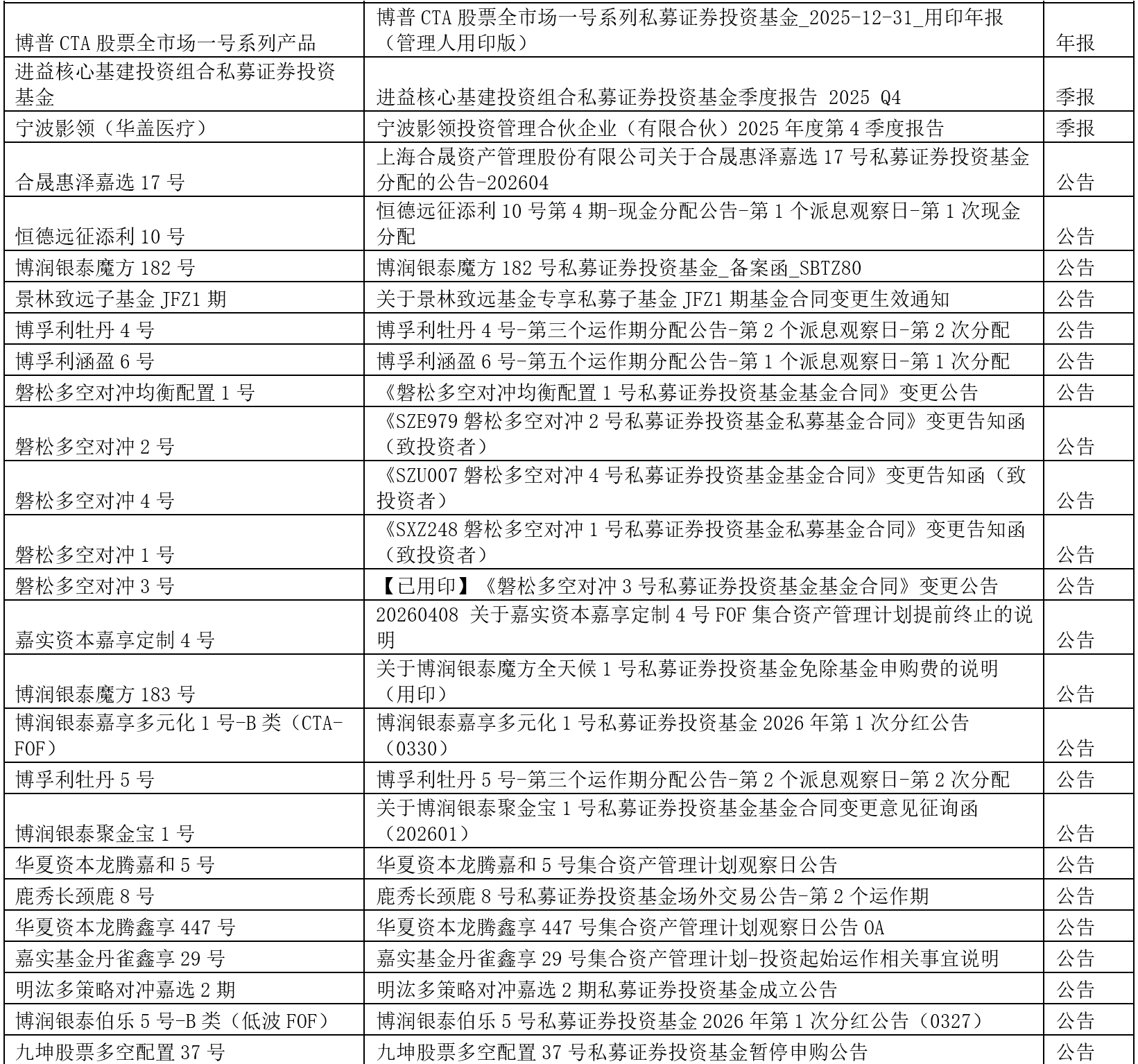 关于我们 >> 网站公告 >> 信息披露提醒2026.4.3 信息披露提醒2026.4.3 2026-04-03 尊敬的投资人: 以下产品信息已发布,请您登录会员中心或嘉实财富APP查看,或咨询您的理财师。