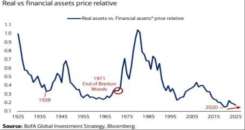 回顾历史,如下图美银的研究所示,在上世纪70年代大滞胀时期,实物资产相对于传统的金融资产的价格曾有一波迅速的拉升。当下相似的宏观背景(滞胀担忧)与全新的产业趋势(实物资产作为AI的基础设施)叠加,我们认为,实物资产再次崛起的时代已经来临了!在HALO新范式和宏观新形势下,将实物资产纳入整个账户配置和账户构建的理念和过程中,也是适应时代趋势的理性选择。唯有重视实物资产的配置价值,才能让投资组合更具韧性,在复杂市场中真正实现穿越周期,长期成长。