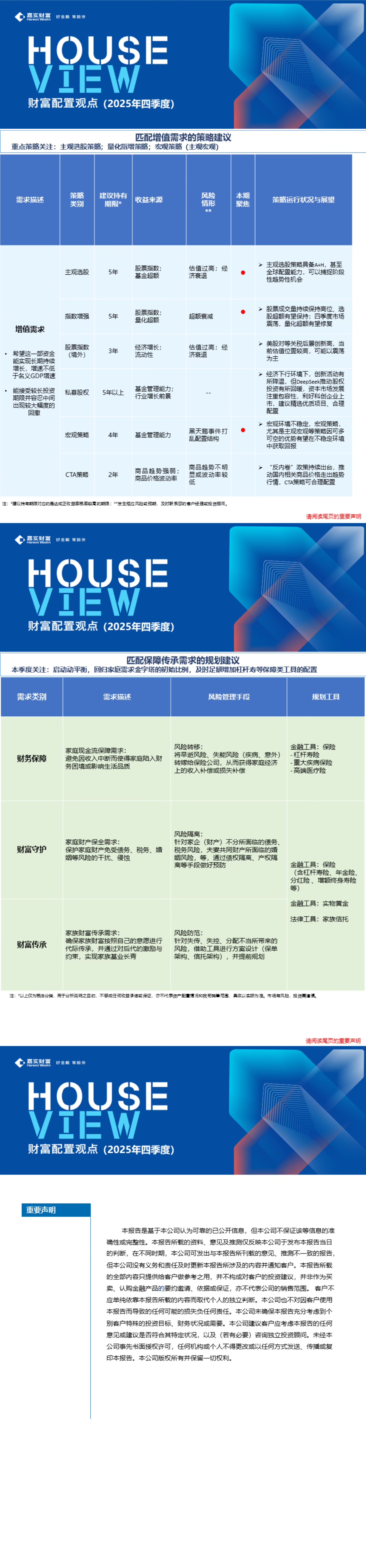 重要声明:本文中的信息或所表述的观点并不构成对任何人的投资建议,也没有考虑到接收人特殊的投资目标、财务状况或需求,不应被作为投资决策的依据。载于本文的数据、信息源于市场公开信息或其他本公司认为可信赖的来源,但本公司并不就其准确性或完整性作出明确或隐含的声明或保证。本文转载的第三方报告或资料、信息等,转载内容仅代表该第三方观点,并不代表本公司的立场。本公司不保证本文中观点或陈述不会发生任何变更,在不同时期,本公司可发出与本文所载资料、意见及推测不一致的报告。文中涉及客户需求财富规划示例,提及的增值、生息、保障等仅为基于客户需求进行的概念分类,并非根据风险等级对产品/服务进行划分。分类仅供参考,不同的分类方法得出的结果可能存在差异。不构成任何产品或服务的宣传推介,不构成具体投资建议,亦不代表我司销售范围。市场有风险,投资需谨慎。本公司不保证投资者一定盈利,也不保证最低收益或本金不受损失。投资者应充分考虑其风险承受能力、风险识别能力,谨慎投资.