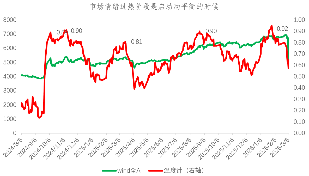 很多投资者关心,我们到底什么时候启动动平衡。根据我们的经验观察,有两个节点是启动动平衡的好时机:一个是股票市场疯涨的时候,一个是每年年底。