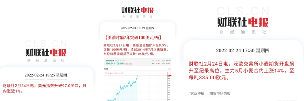 俄乌局势波谲云诡,资本市场明显动荡。股市跌、避险资产涨,原油、粮食等大宗商品涨。