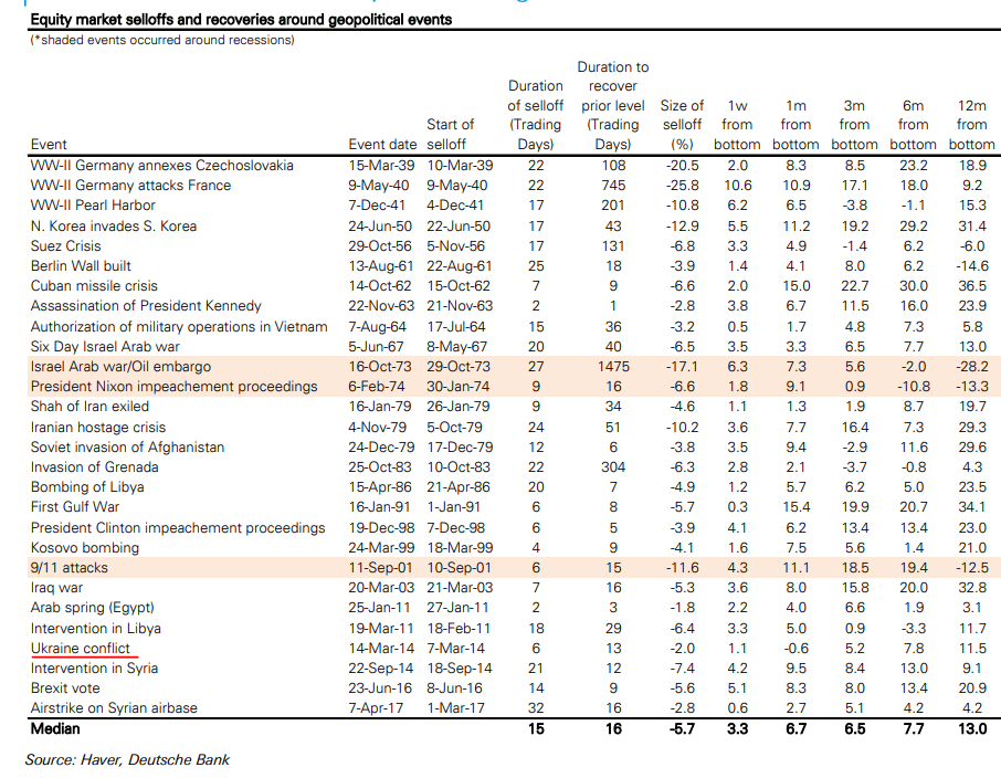 首先,历史数据表明,地缘政治冲突对股市的影响是短期的,是有限的。当然历史不代表未来,但历史呈现出这样的特征背后是有原因的。现代战争的成本越来越高,代价也越来越大,多数战争的持续时间是短暂的。战争对经济的影响关键是持续时间和战争规模。如果规模可控,时间有限,那么战争对经济的冲击也是有限的,对资本市场的影响也应是有限的。资本市场往往在战争爆发那一刻会出现剧烈波动。这可能是因为,战争会促发不确定性的提升,但战争推进后,局势的演绎变得相对清晰。资本市场也在从失去“锚”到重新找到“锚”的过程中,逐渐回归稳定。
