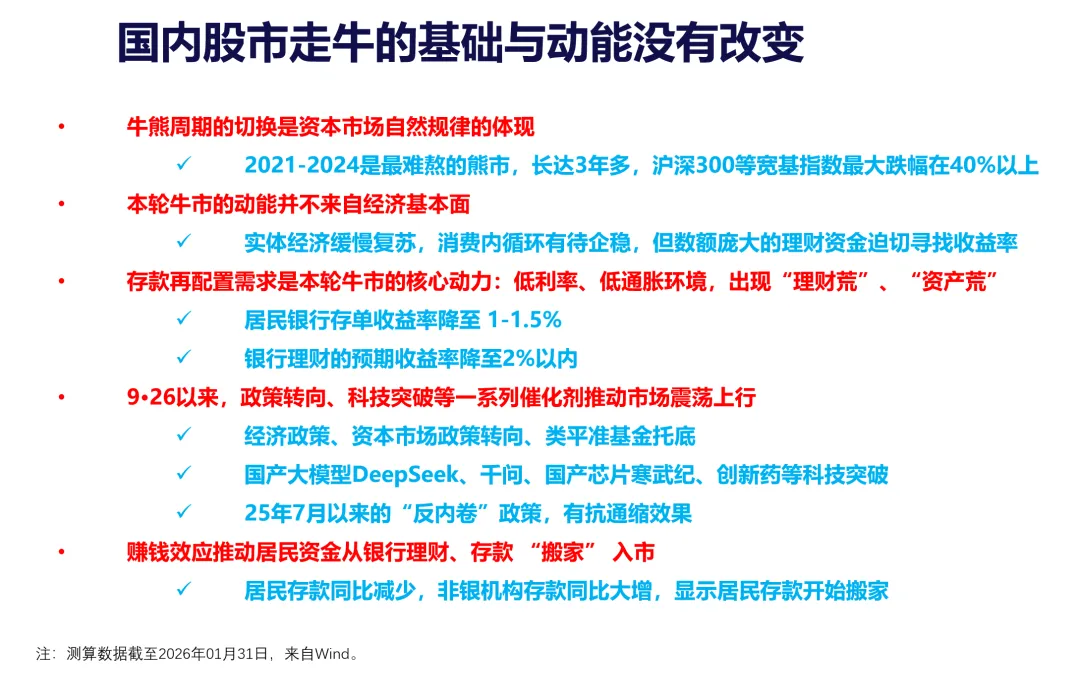 市场短期出现回调的主要因素可能还是上涨过快,部分资产积累了一定泡沫。其中以黄金、白银为代表的贵金属尤为明显,有色金属和存储板块等细分领域也有类似特征。
